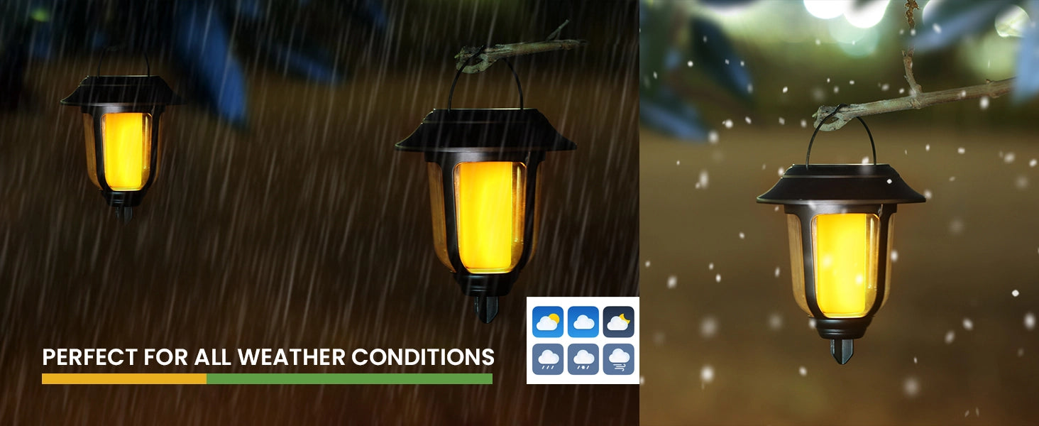 • IP44 WATERPROOF DESIGN: Made with IP44-rated ABS plastic, these Solar Waterproof Lanterns are designed to withstand exposure to water, ensuring durability and safety. They perform well in all weather conditions, making them a long-lasting choice for outdoor use.