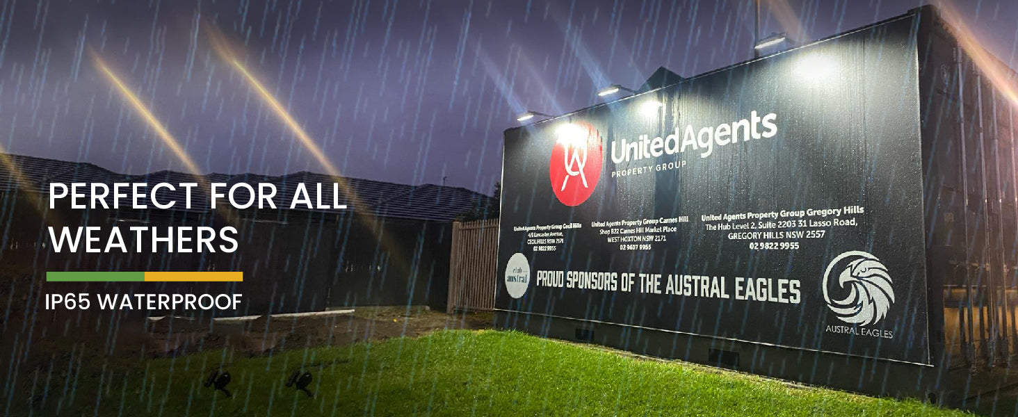 • IP65 WATERPROOF DESIGN: Constructed with a durable aluminum alloy body and an IP65 waterproof rating, this light is built to endure rain, heat, and harsh weather, making it perfect for pathways, billboards, and gardens.