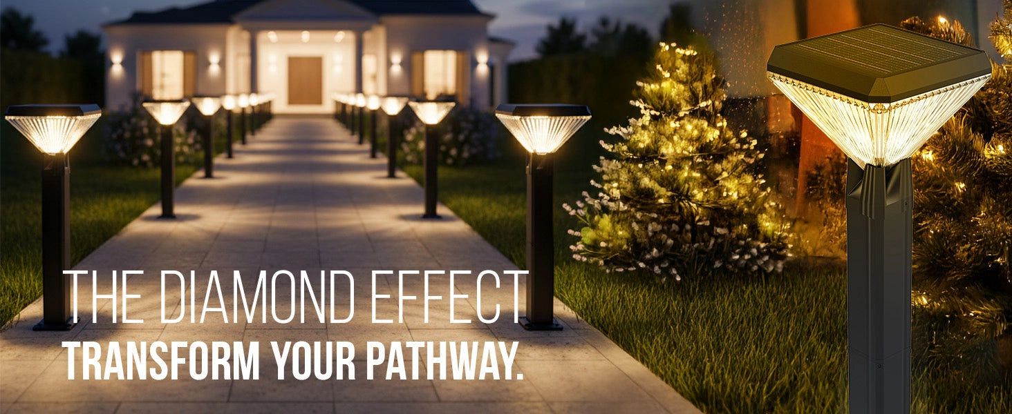 Designed with a unique crystal-cut diffuser, the light produces a sparkling diamond-glow pattern, giving your outdoor spaces a luxurious and decorative touch.