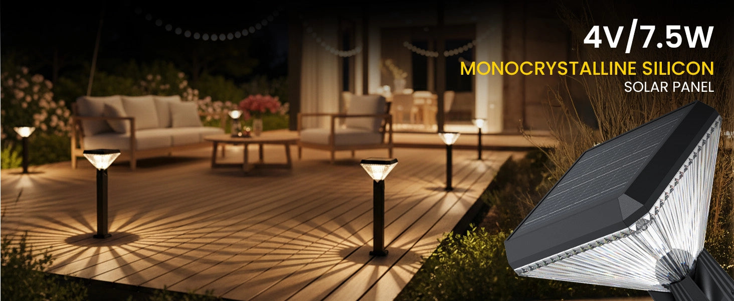This solar gate light features a high-efficiency 4V/7.5W monocrystalline panel and a powerful 3.2V 8800mAh lithium battery (18730 type), ensuring bright and reliable lighting throughout the night.
