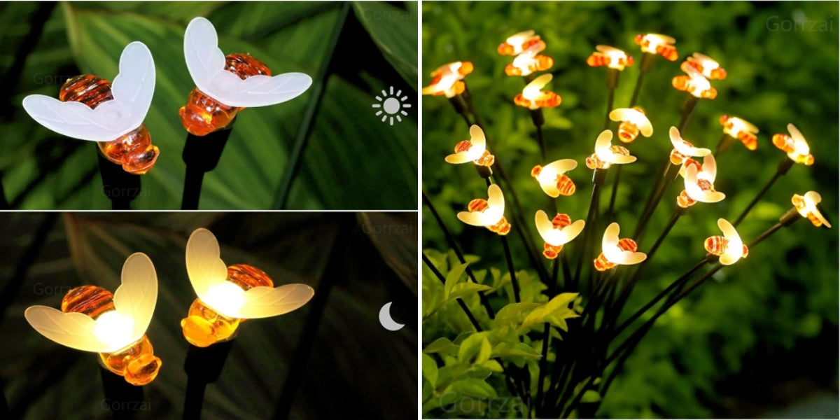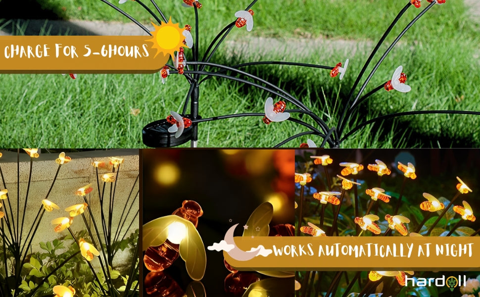 Hardoll Solar Light Outdoor Garden Decorative Waterproof Honey bee lamp for Home Landscape,Pathway,courtiyard Automatic on and Off (Warm White,Flashing &Steady Mode)