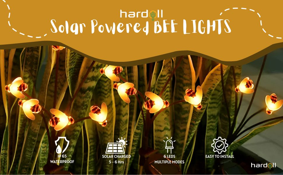 • BEAUTIFUL DESIGN: Hardoll Garden LED Solar Lights Outdoor for Home comes with Honey bee shaped designs on the lamp shade, providing a wonderful visual treat for you at night. It has 6 PCs Warm White LED and emits warm glow, illuminating your garden with beautiful patterns. A fully charged solar light can light up for 8-10 hours.
