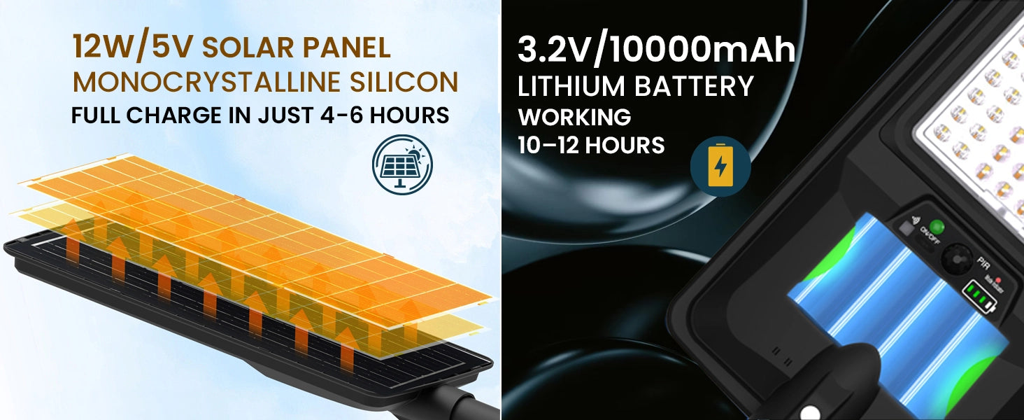 • [SOLAR POWERED]: Hardoll Solar Street Light for Roads works in solar energy. It has a 5V/12W solar panel that has a higher energy absorption rate that enables the Solar Lights to get charged in a few hours. Solar Street Lights for Outdoor has a backup of 10000mah 3.2V LiFePo4 battery that helps to light up for 12-14 hours.