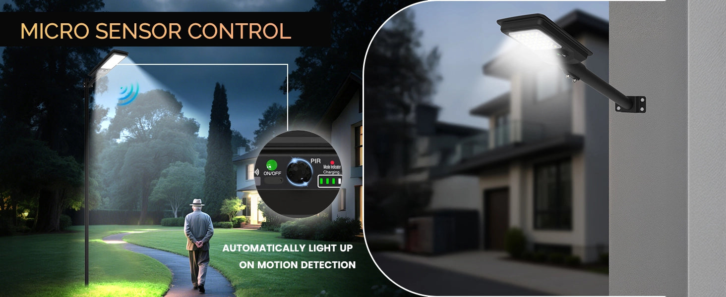 • [DIFFERENT LIGHTING MODES]: Microwave Radar Motion Sensor Solar Street Post Lights works on remote and has six lighting modes.