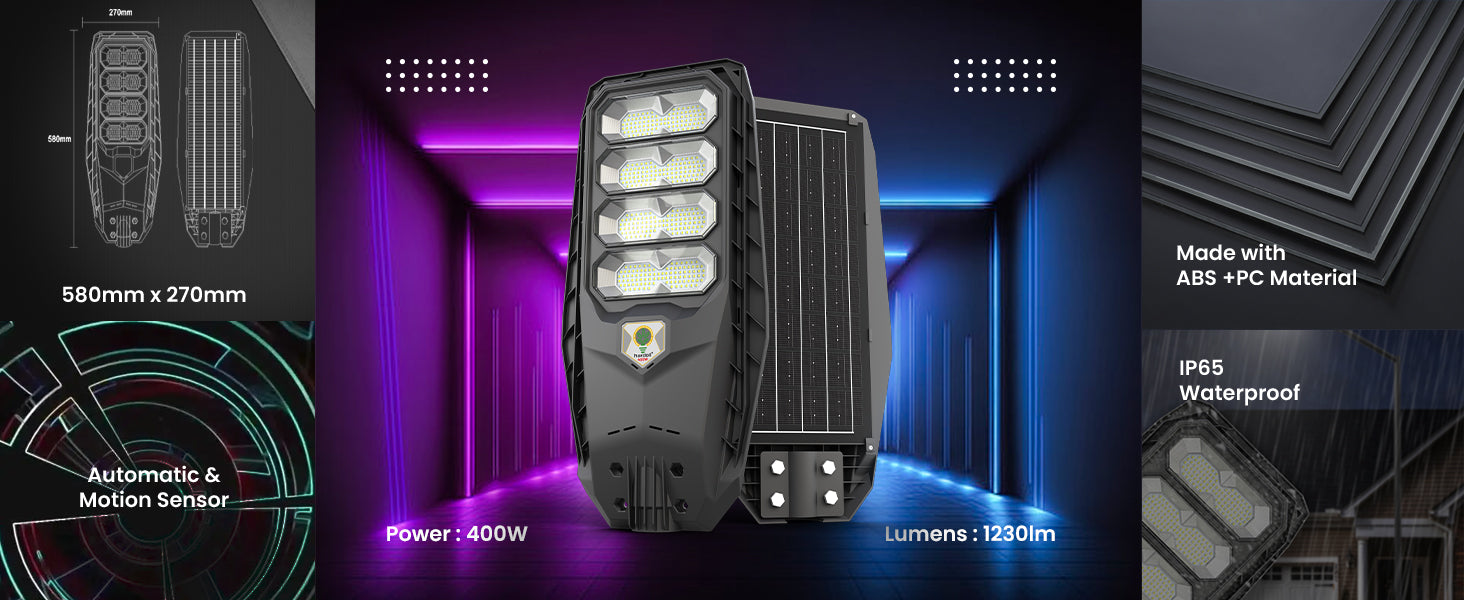 Hardoll 400W All in One Solar Street Light LED Outdoor Waterproof Lamp for Home Garden (ABS-Pack of 1) (Refurbished)