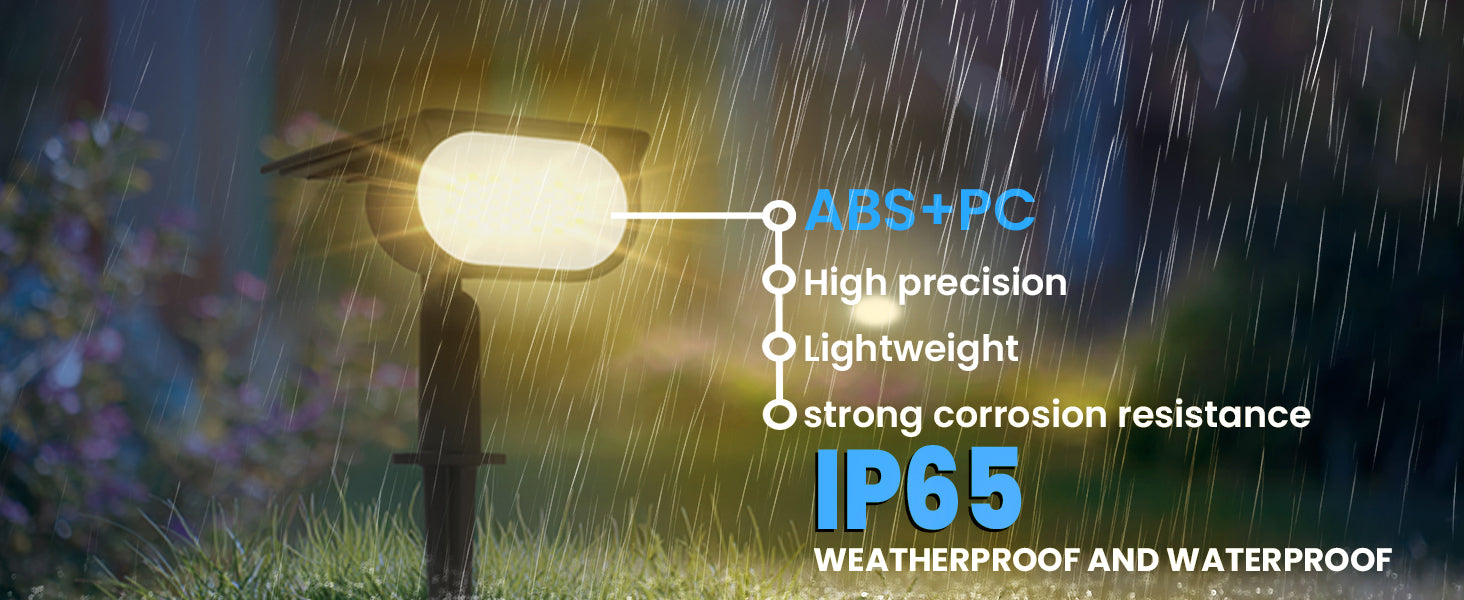 WATERPROOF AND DURABLE: This solar garden spike light offers IP65 waterproofing, making it perfect for all-weather use. Constructed from durable ABS material, it ensures long-lasting outdoor lighting for gardens and outdoor areas.